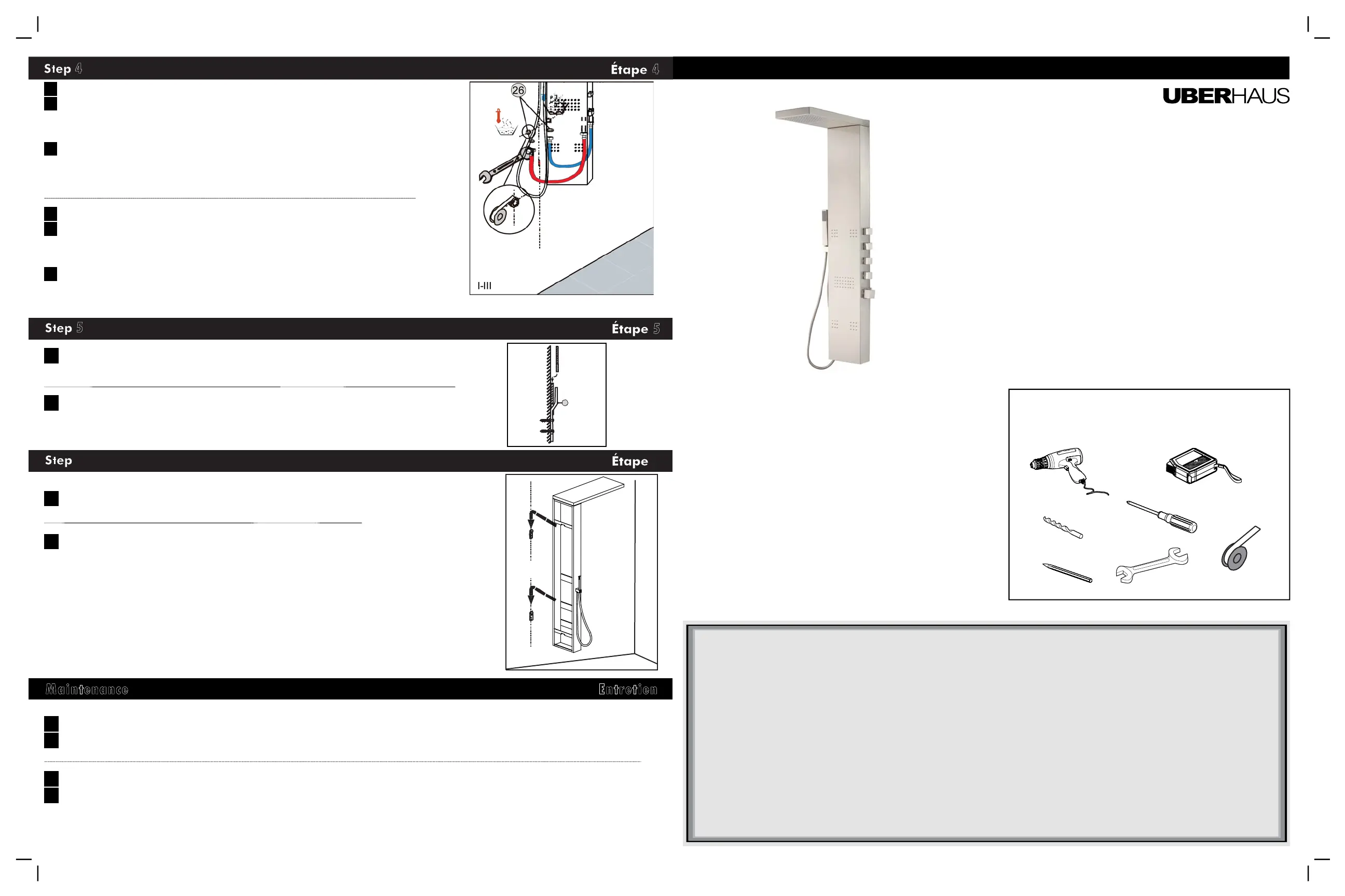 MERCI D’AVOIR ACHETÉ CETTE COLONNE DE DOUCHE UBERHAUS. CE PRODUIT A ÉTÉ CONÇU POUR
