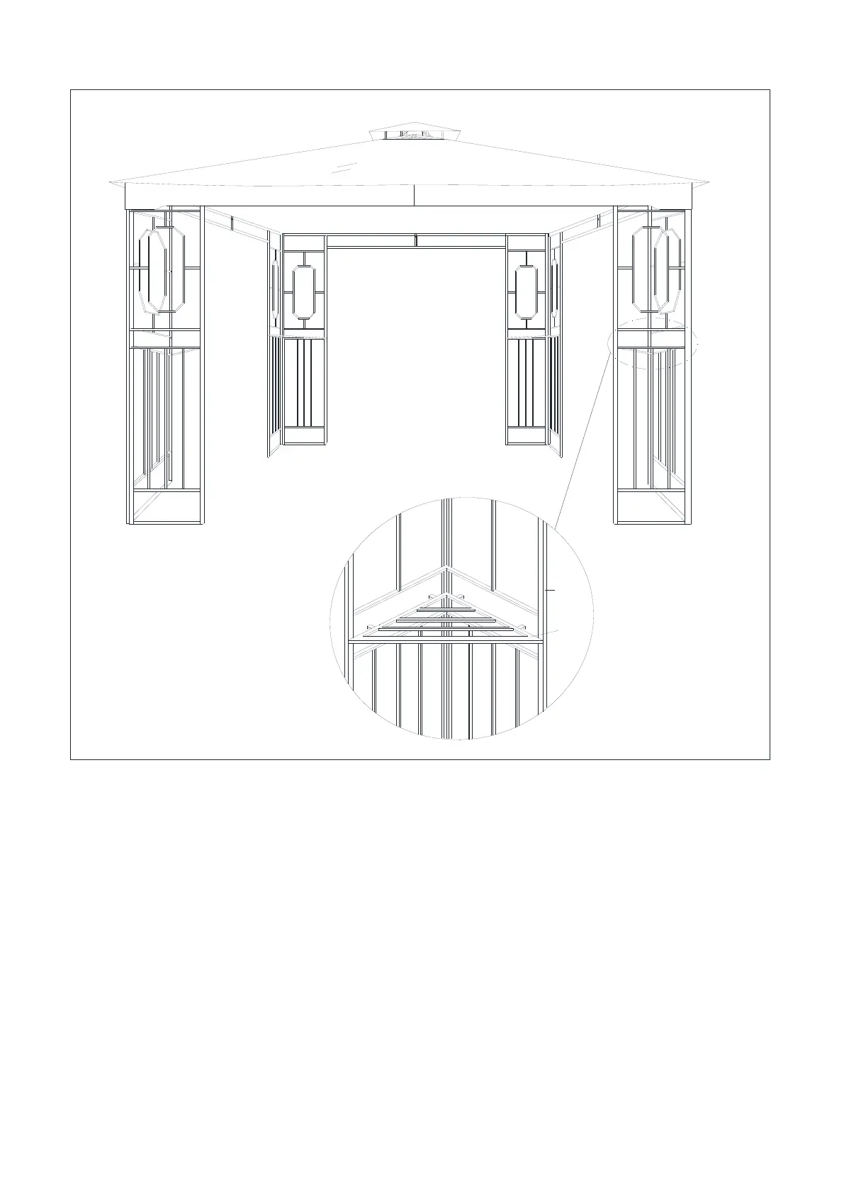 7. Placez les tablettes (G) sur les panneaux de coin (E) comme vous le