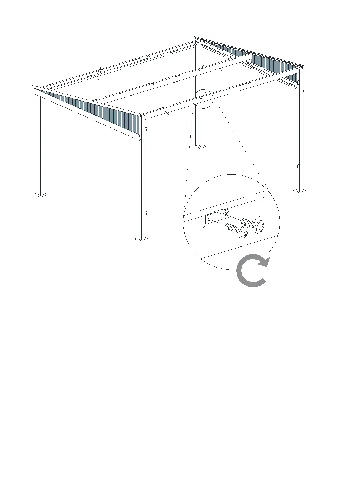 10.1 Attach the Connectors (P) to the assembled Lintels (D, D1, F, F1, G & G1) with Screws (V).