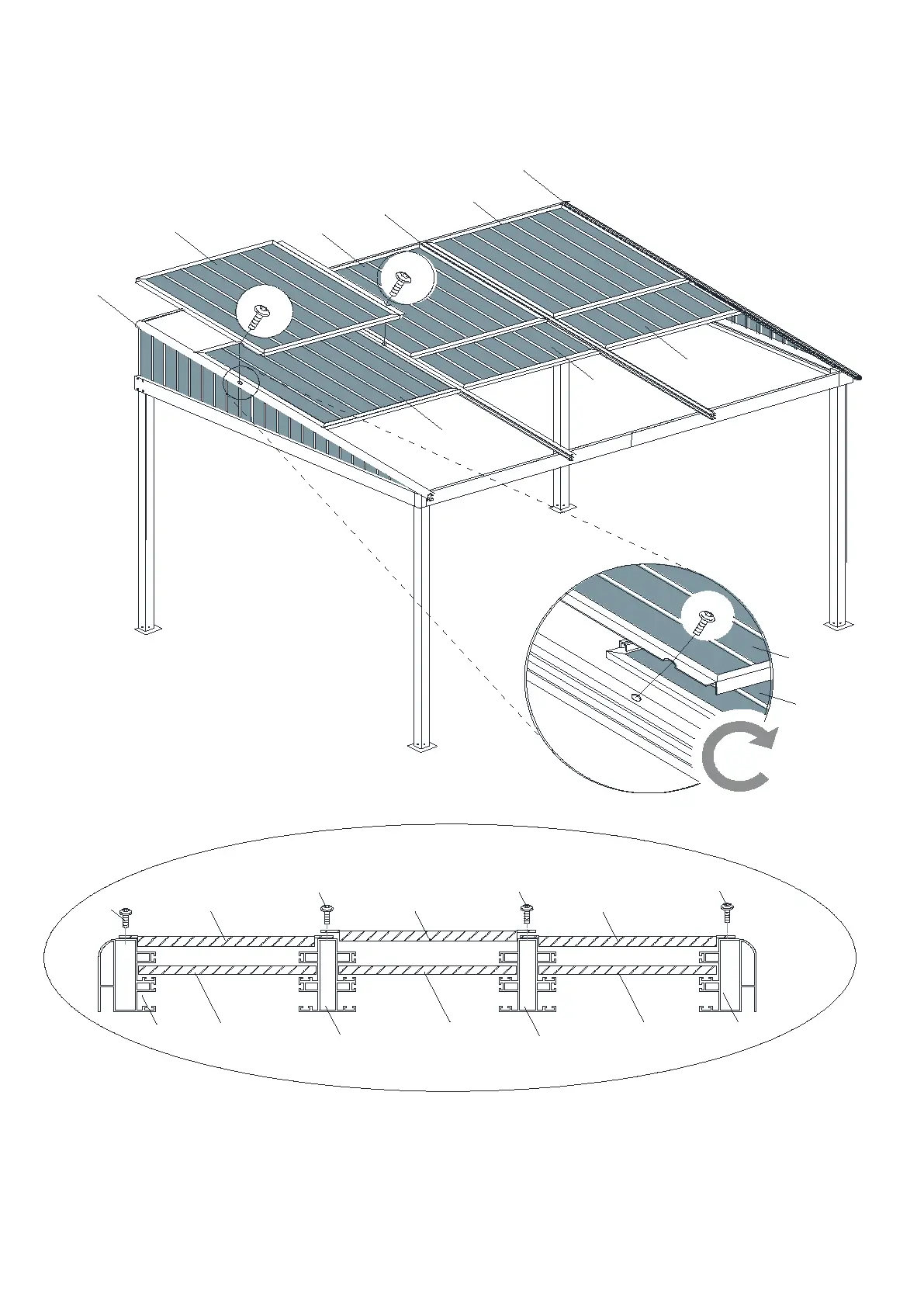 15.Fixez les panneaux de toit principaux (K2) sur la barre de coin pour le toitJ/J1), la barre centrale