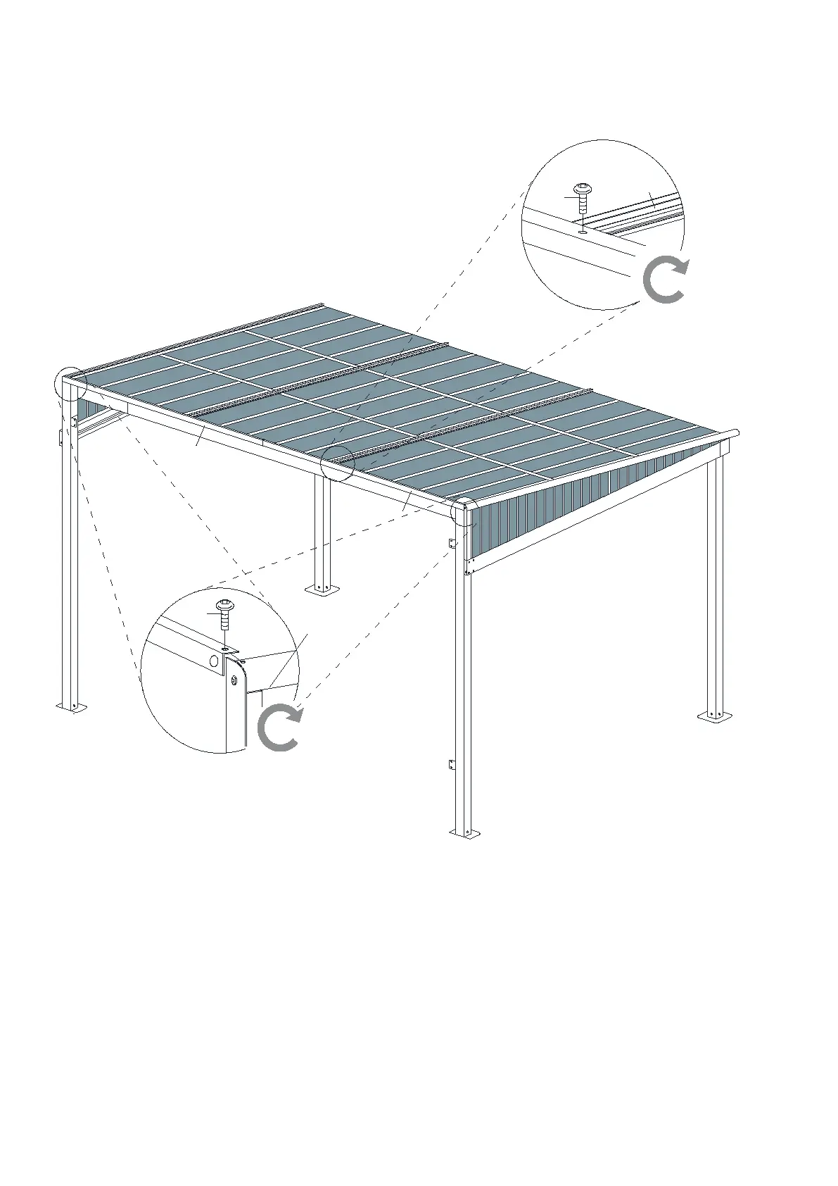 centrale pour le toit (J2) avec une vis (V), comme illustré.