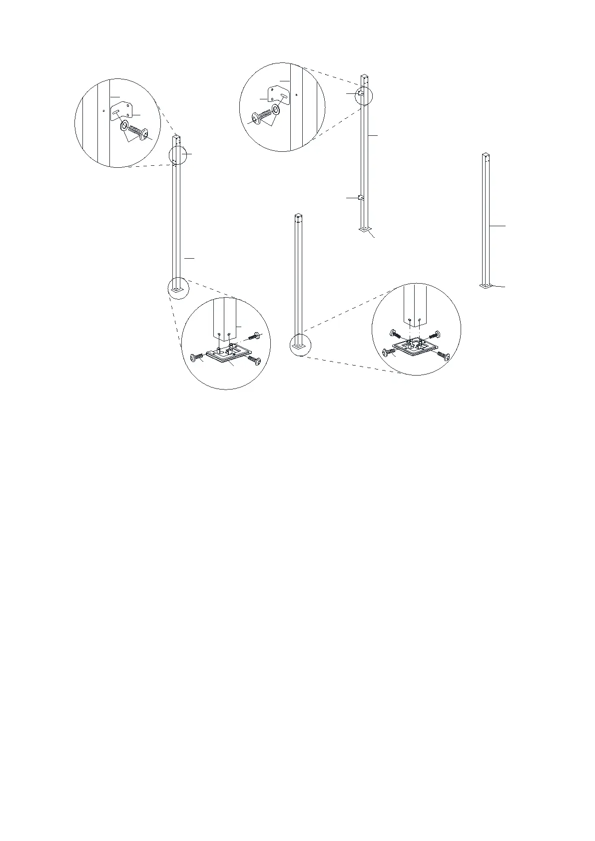 1.2. Attach the Base Plate (N) to the bottom of the Post (A and A1) by using the Screws (V).