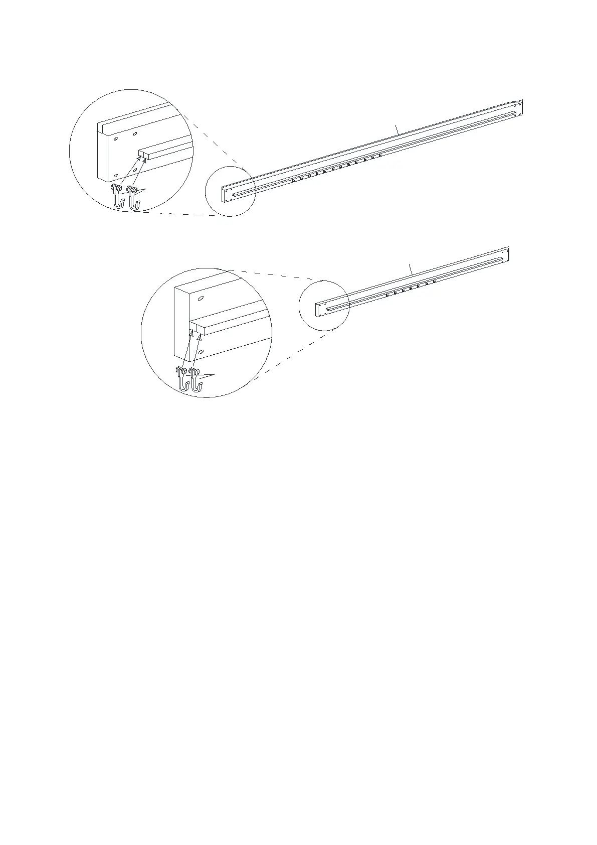 must be placed on the internal Rail. The same number of Hooks must be used for the Curtains