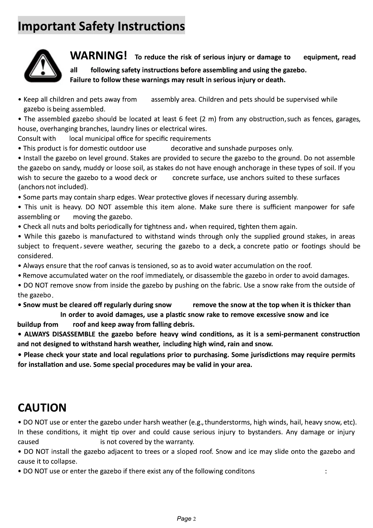1. Visible movement of support members, roofing panels or sagging roofline.
