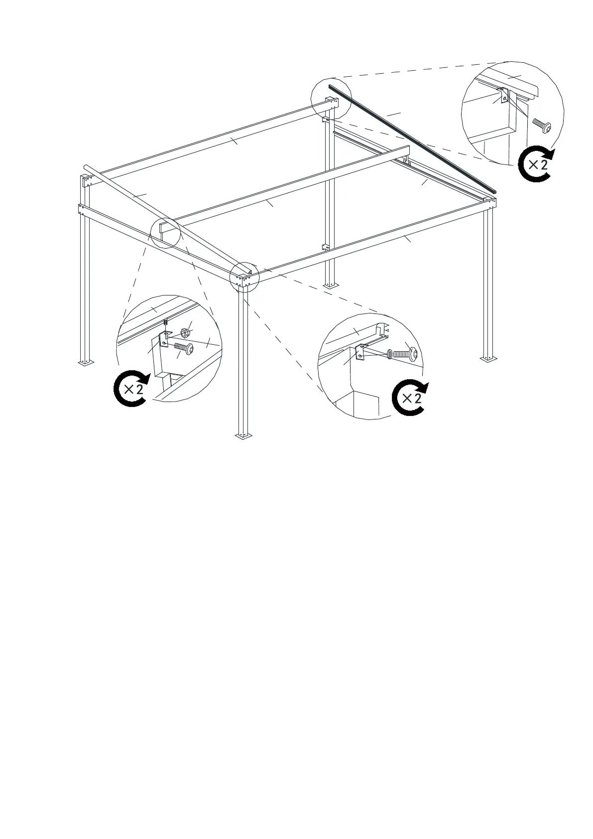 Lintel (G). Place Screws in the center of the Roof Holder Bars (J & J1) into the holes of the Connectors,