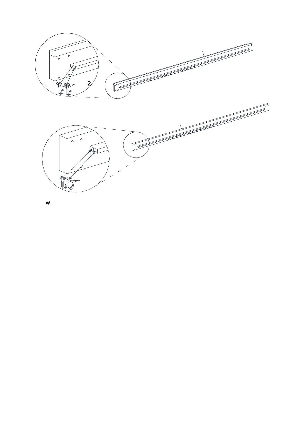 2.2. Insert twelve hooks (R) into the Rail (D) by sliding them into the appropriate location designed for