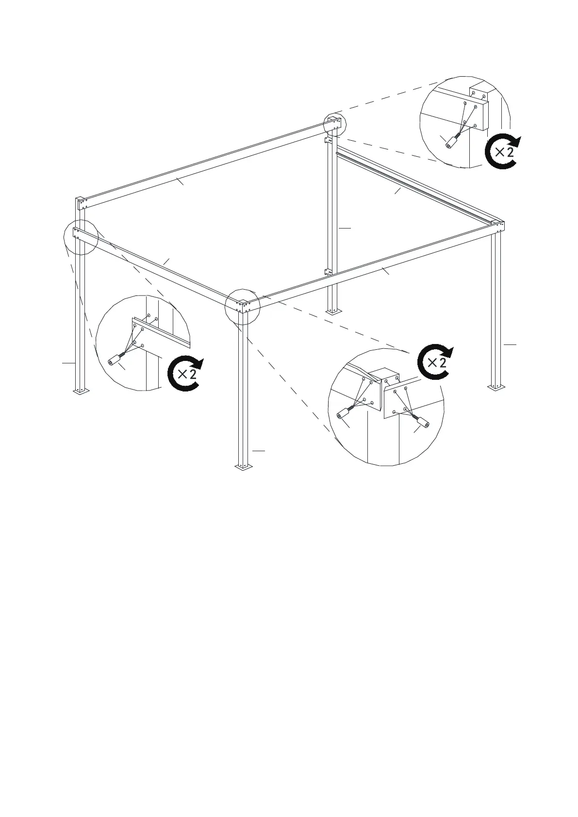 3.3. Attach the side Rail (C) to Posts (A & B) with Screws (X). Attach the Rail (C1) to Posts (A1 & B)