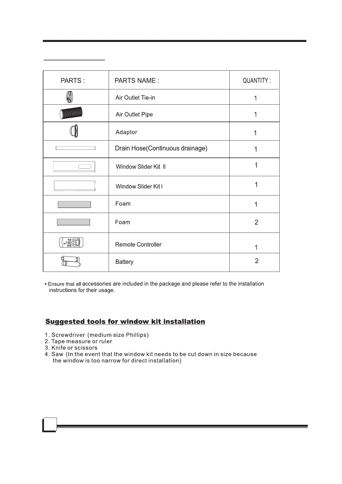 Uberhaus 87795000 - Identification of Parts; Accessories; Suggested Tools for Window Kit Installation