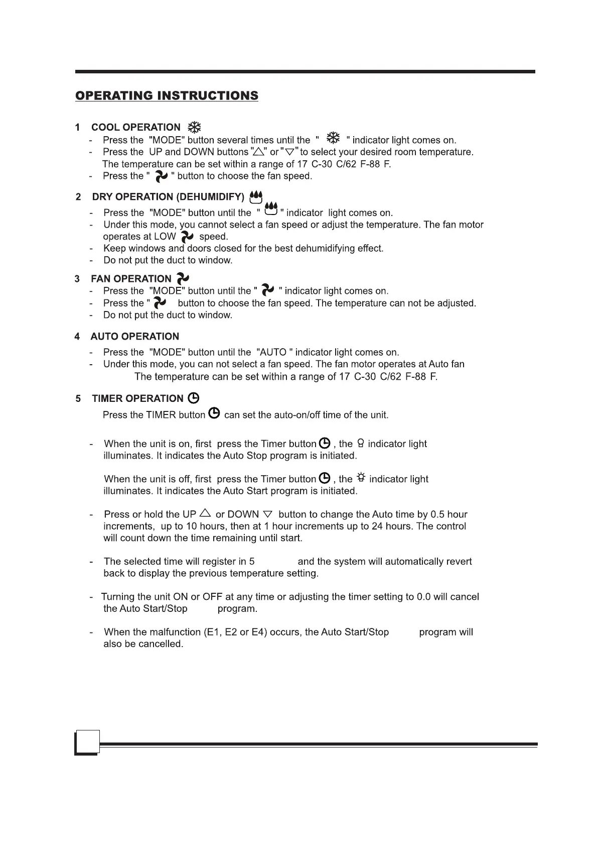 Uberhaus 87795002 - Operating Instructions; Cool Operation; Timer Operation