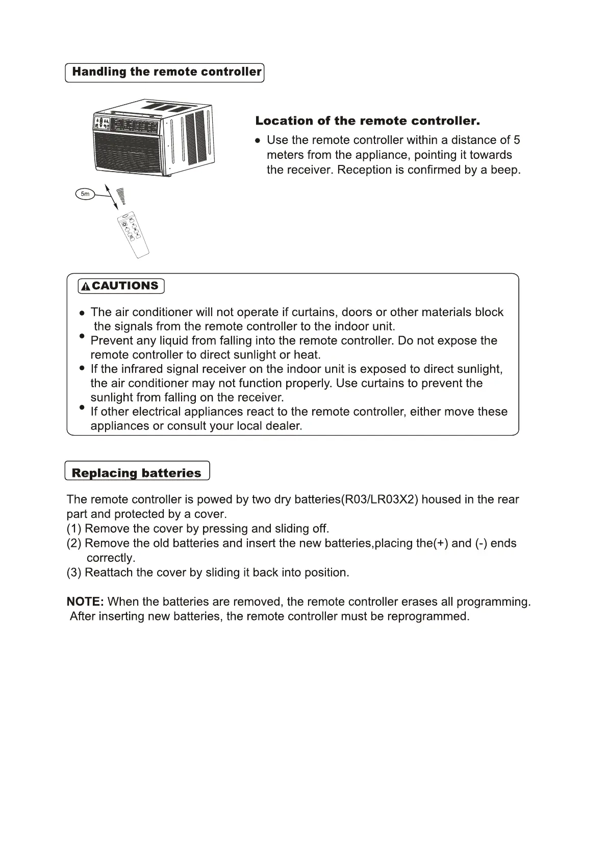 Uberhaus 87795008 - Handling the remote controller; Replacing batteries
