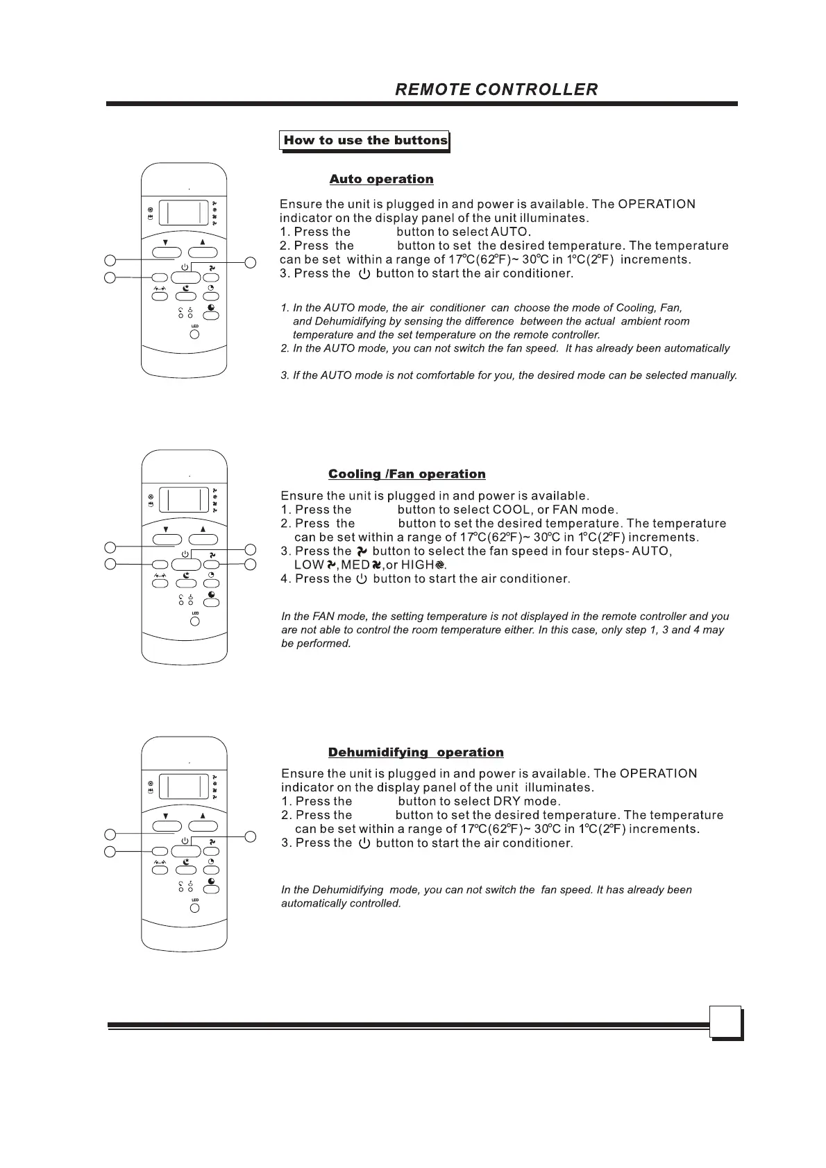 Uberhaus 87795021 - Remote Control Operation Modes; Operating Modes via Remote