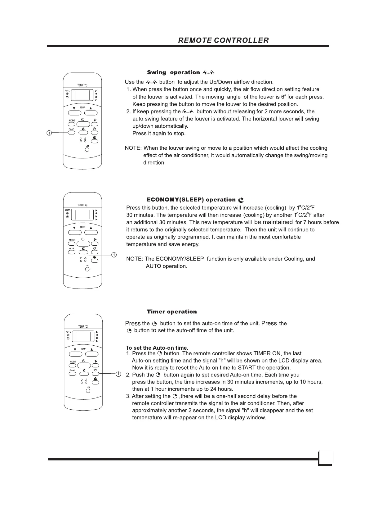 Uberhaus 87795021 - Remote Control Timers and Modes; Swing and Sleep Mode Control; Setting Auto-On Timer