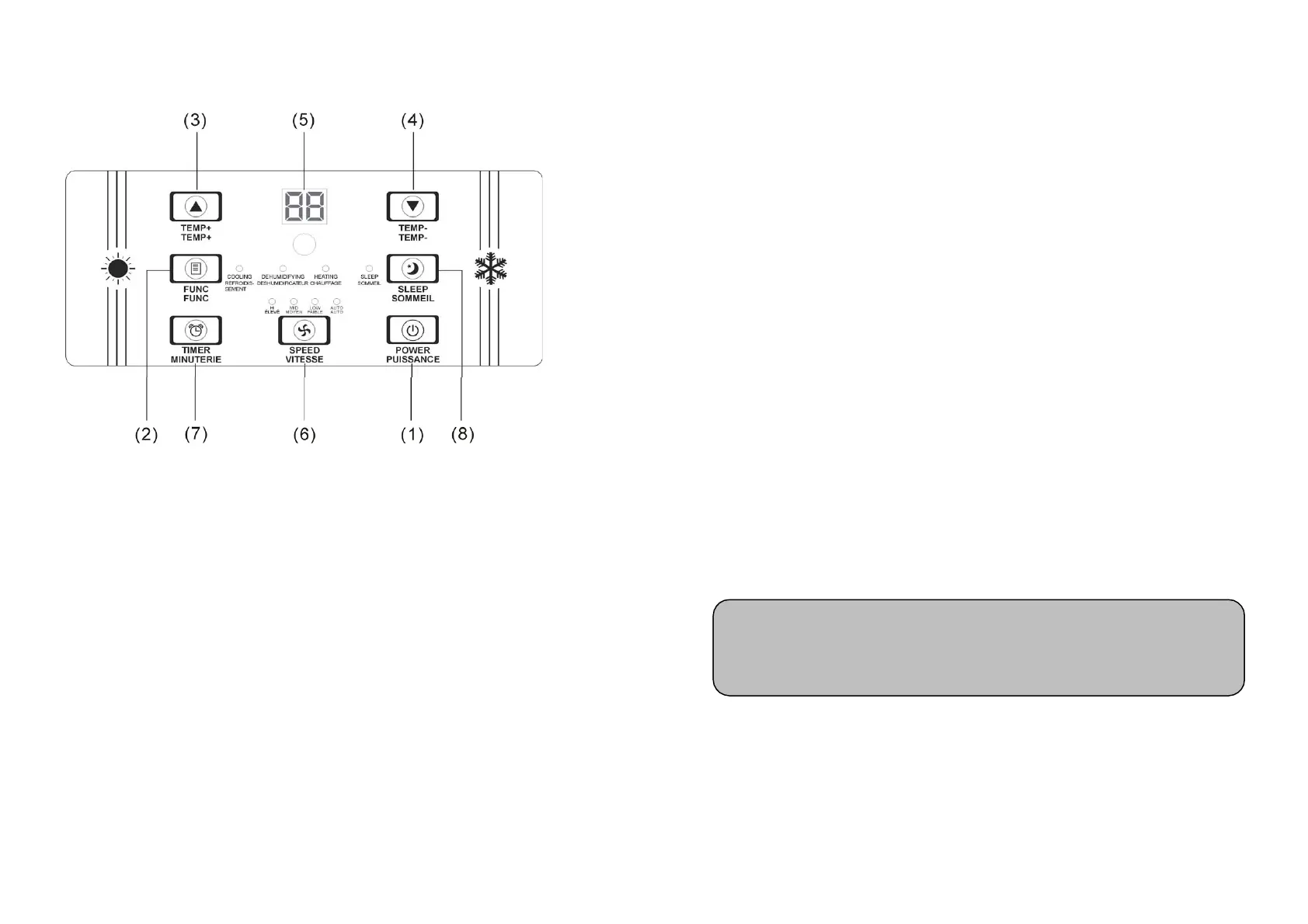 Note: En mode CHAUFFAGE et en mode DESHUMIDIFICATION, la vitesse de ventilation ne peut