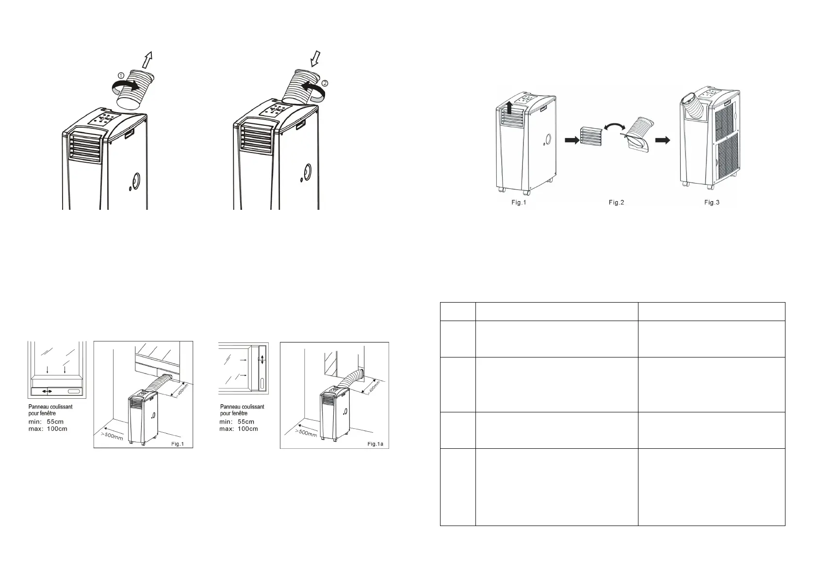 1. Installez le tuyau d'évacuation souple et la le panneau coulissant pour fenêtre tel