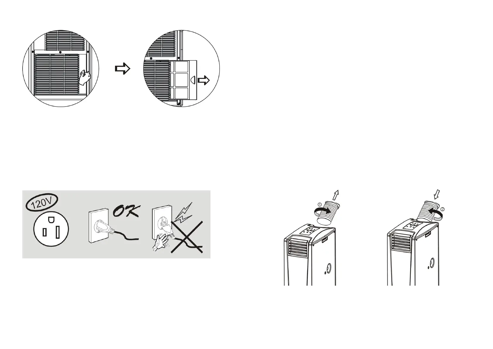 1. To remove: turn exhaust tube according to the direction shown by the arrow and pull