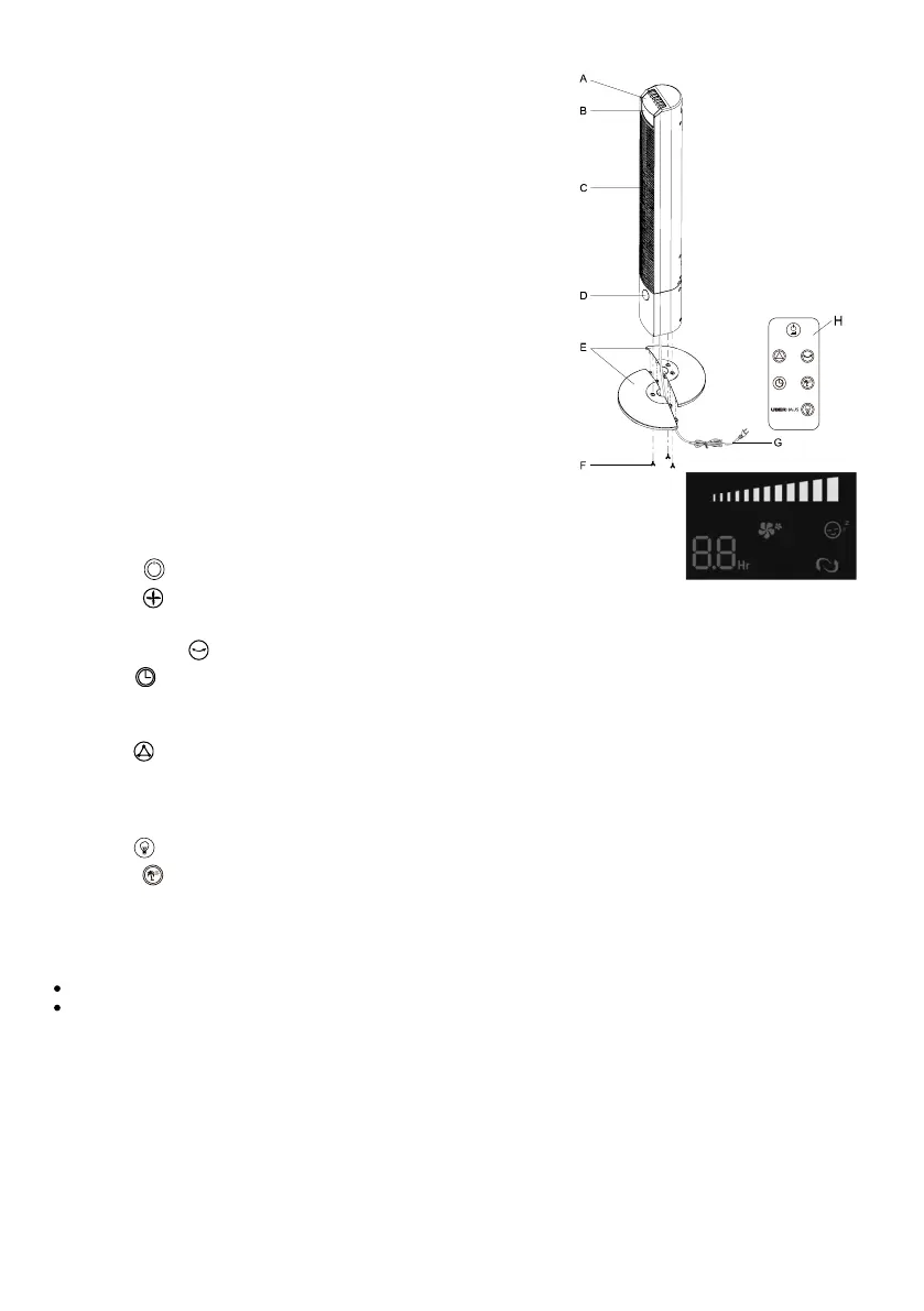 Button –This fan is equipped with an automatic shut-off feature. To select desired operating time,