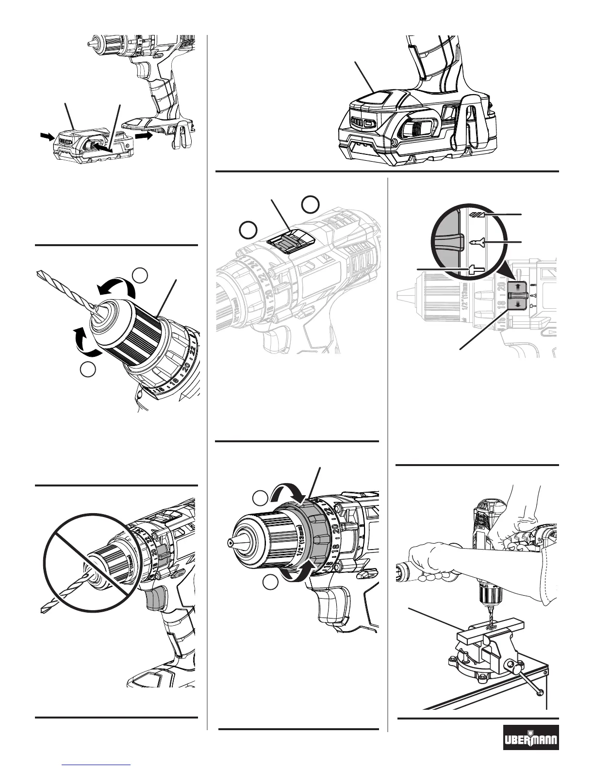 B - Modo taladro / Modo furadeira / Drill mode