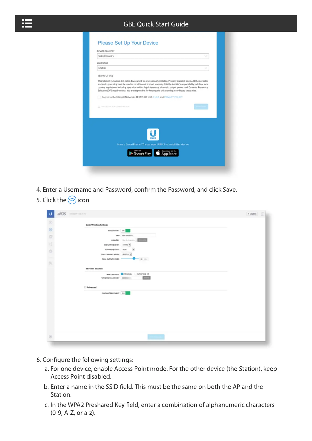 a. For one device, enable Access Point mode. For the other device (the Station), keep