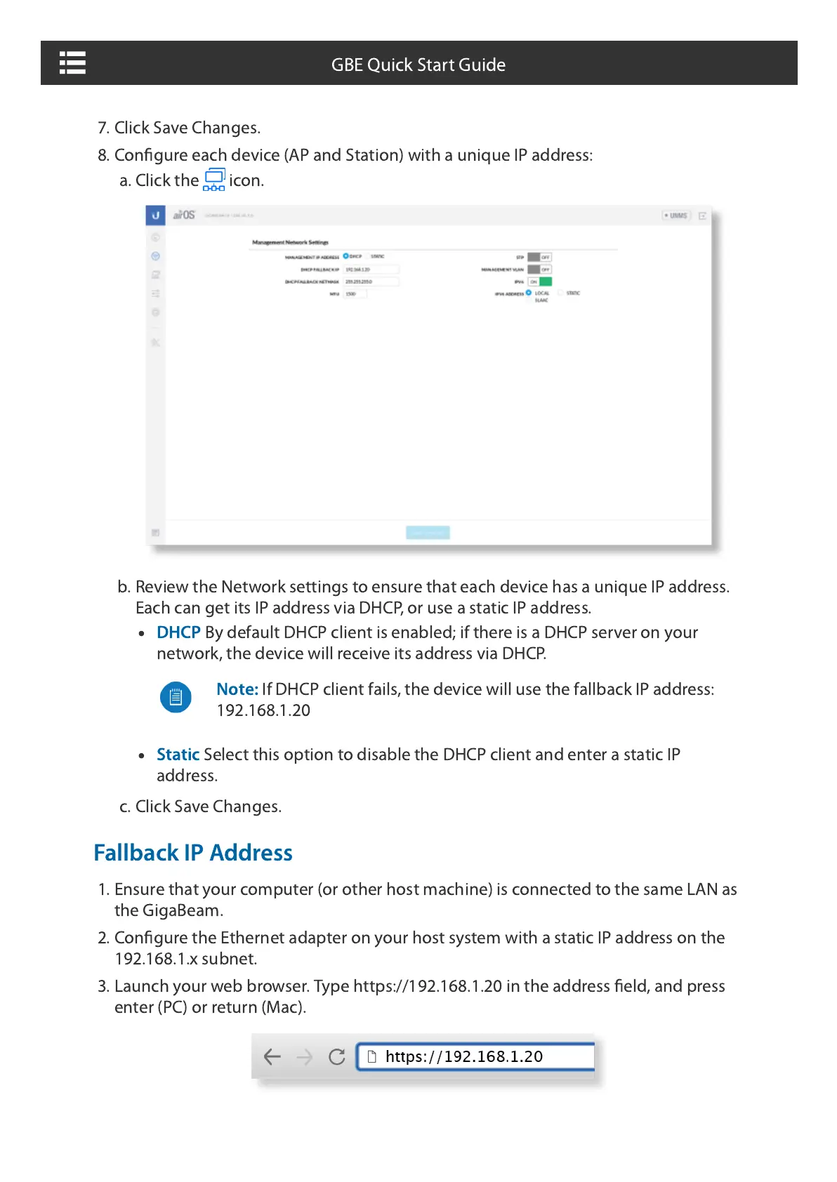 If DHCP client fails, the device will use the fallback IP address: