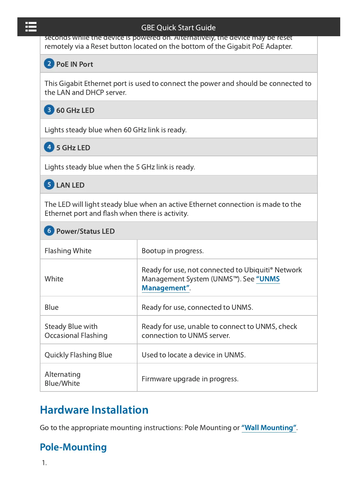 Quickly Flashing Blue Used to locate a device in UNMS.