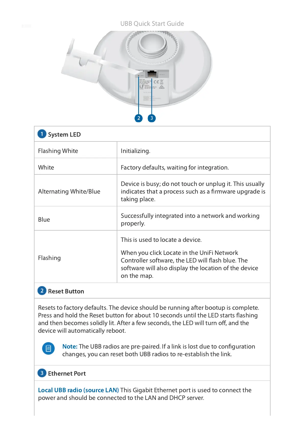 The UBB radios are pre-paired. If a link is lost due to configuration