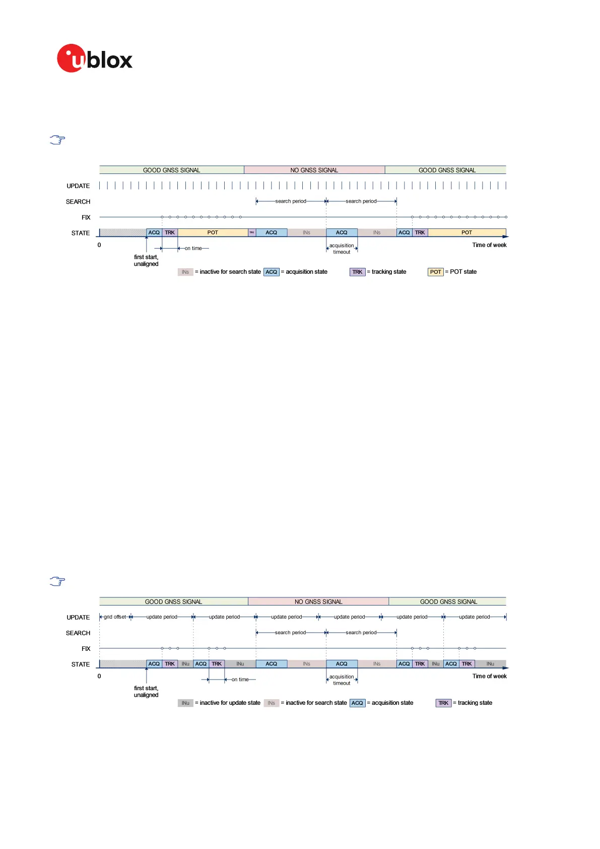 • In the "POT" state the receiver continues to output position fixes according to the CFG-RATE-*.