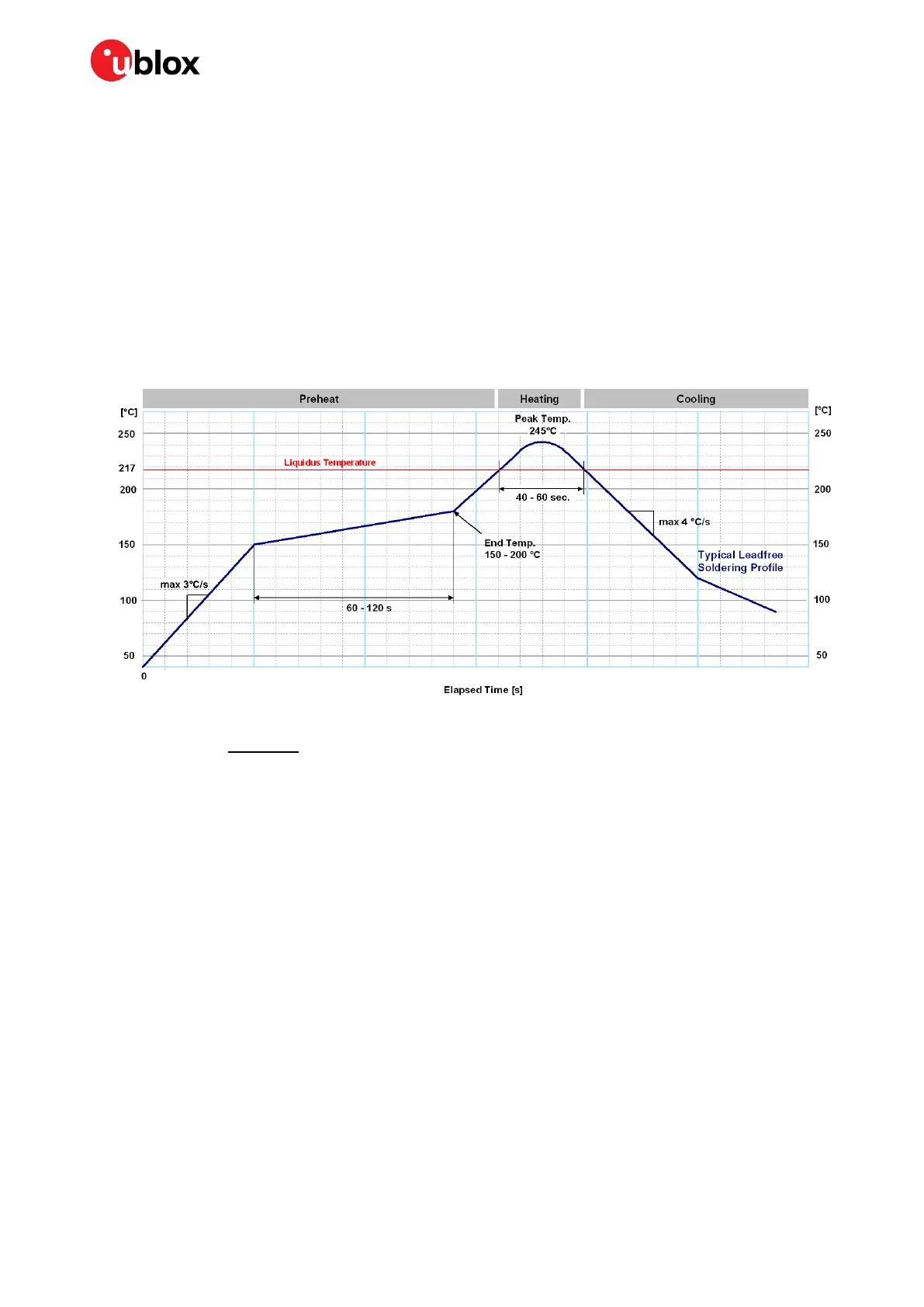soldering temperature in the recommended soldering profile may permanently damage the module.