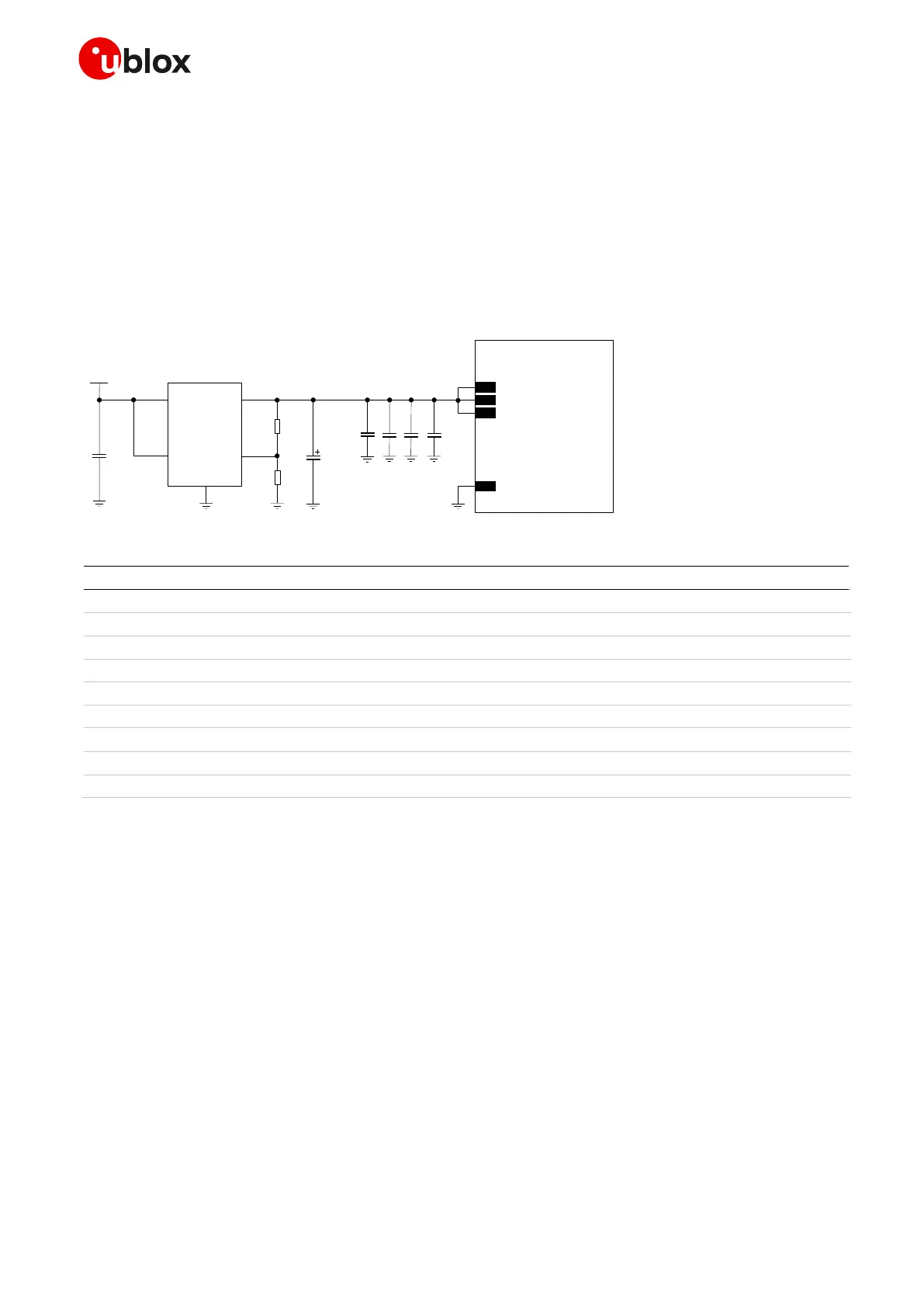 Table 15: Suggested components for low cost VCC supply circuit for SARA-R4 modules, using an LDO linear regulator