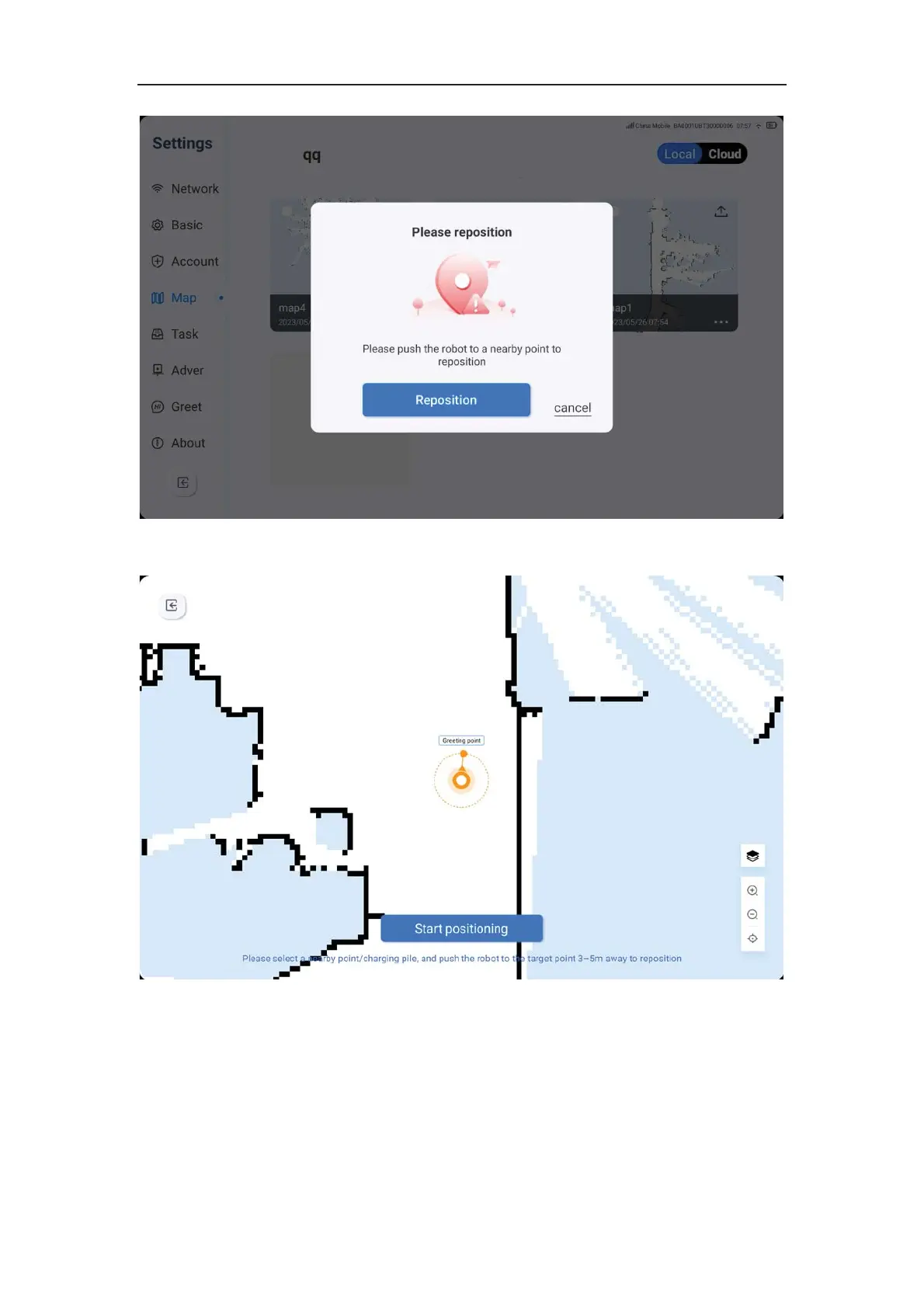 6. The robot must re-locate when switching to a new map or making changes to the