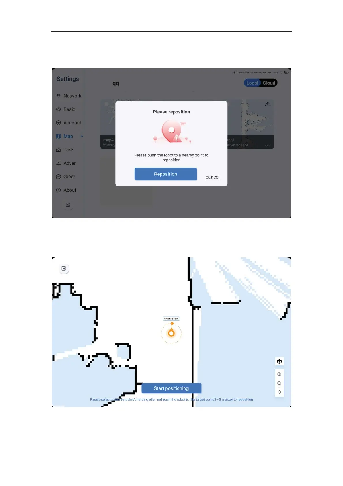guide the machine to the vicinity for re-positioning. After clicking the re-positioning key, the