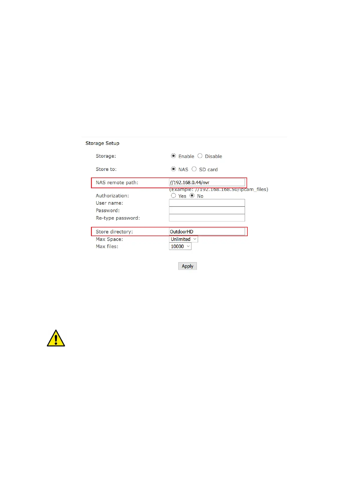 Click Apply when ready. Within two minutes the folder will auto create on the NVR.
