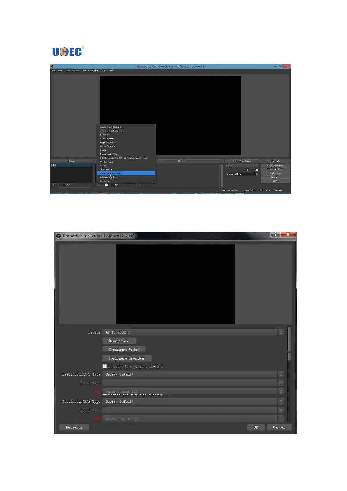 UCEC USB 2.0 Video Capture - Select Video Capture Device in OBS