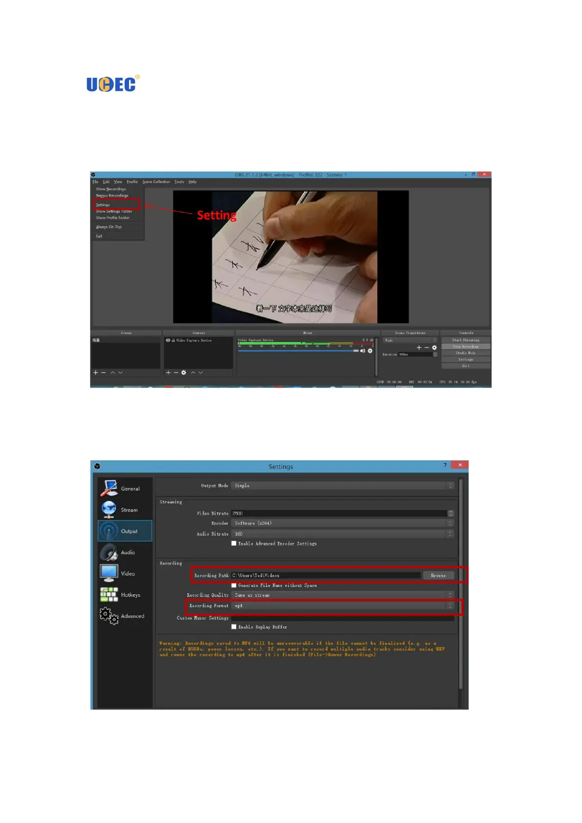 save path, set the output format of the recorded video.