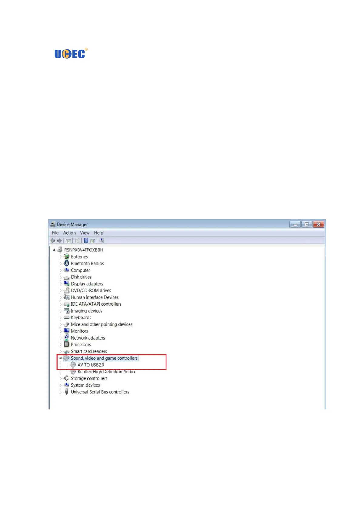 and game controllers”. You should see the “AV TO USB2.0”.