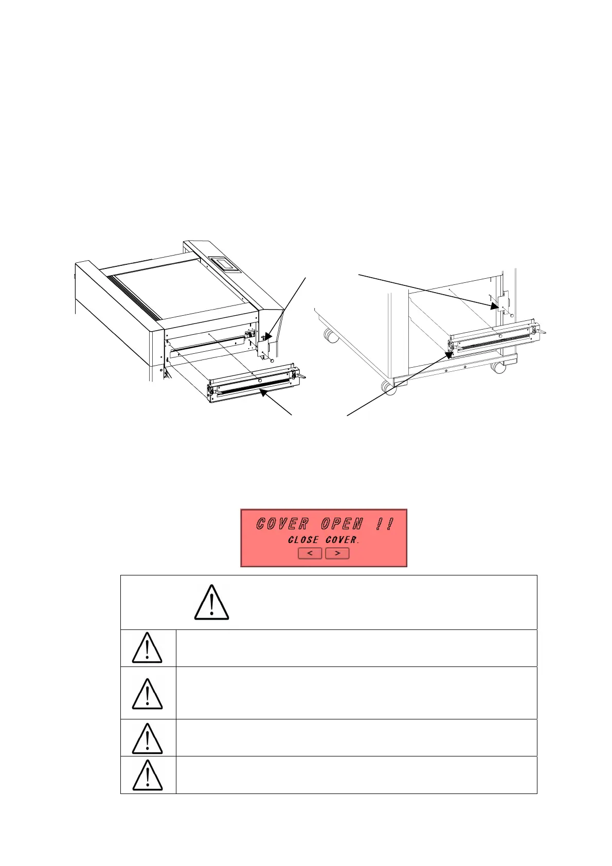 For safety reason, machine doesn't work with cover open, or if these parts are not in