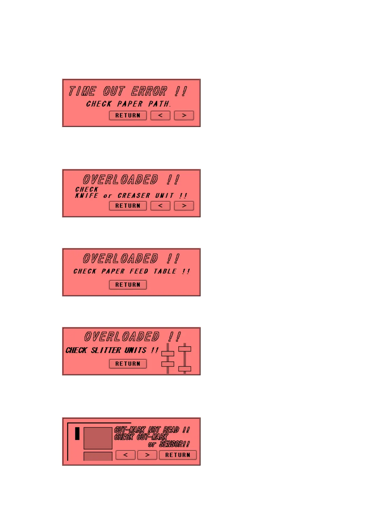 An overloading error occurred at the slitter. Check the blinking slitter.