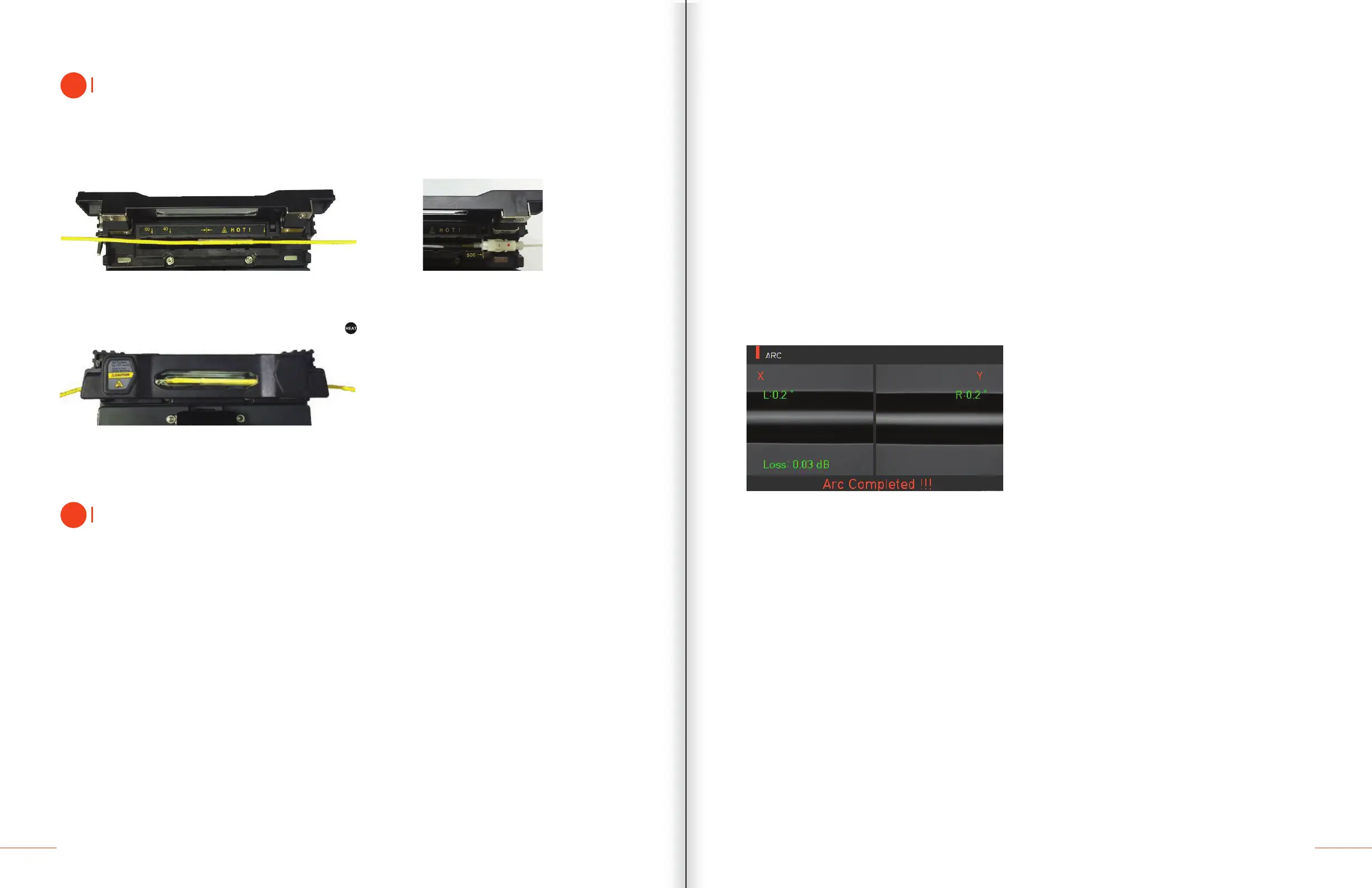 1| Fibers installed on the splicer advance toward each other and stop. The fi bers align once arc cleaning is