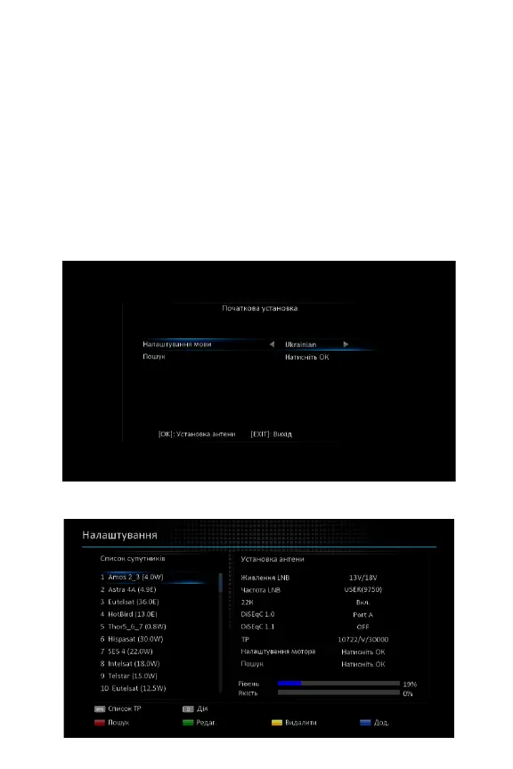 В даному меню можна вибрати мову меню і перейти до налаштування антени: