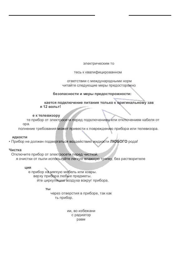 • Прибор не должен подвергаться воздействию жидкости ЛЮБОГО рода!