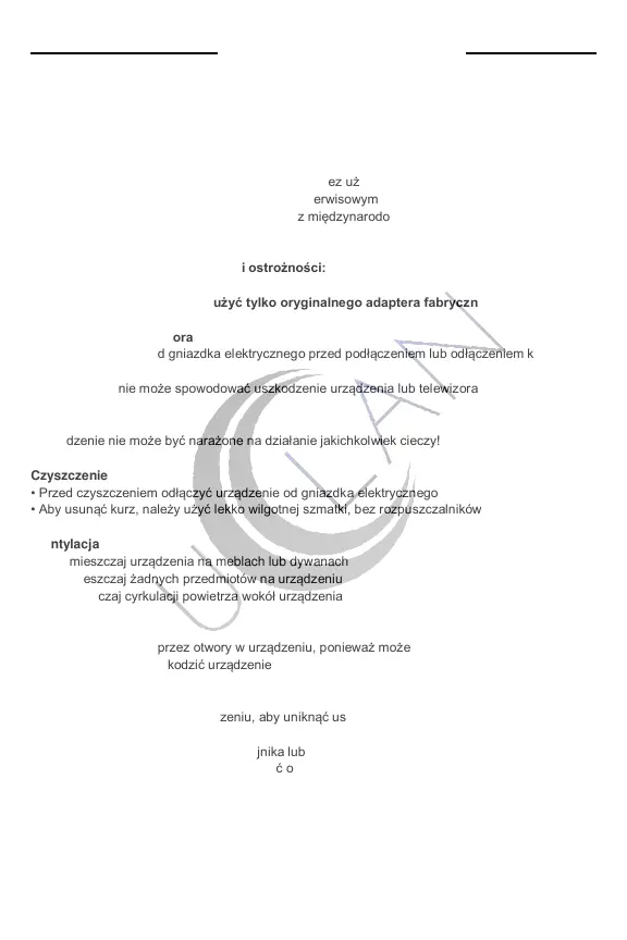Nieprzestrzeganie może spowodować uszkodzenie urządzenia lub telewizora