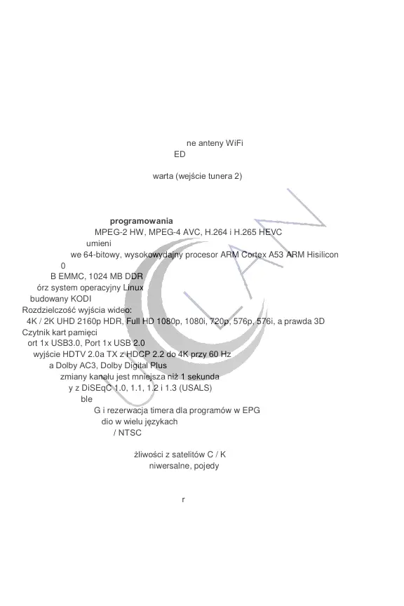 - DVB-S / S2 / S2X + DVB-C / T2 otwarta (wejście tunera 2)