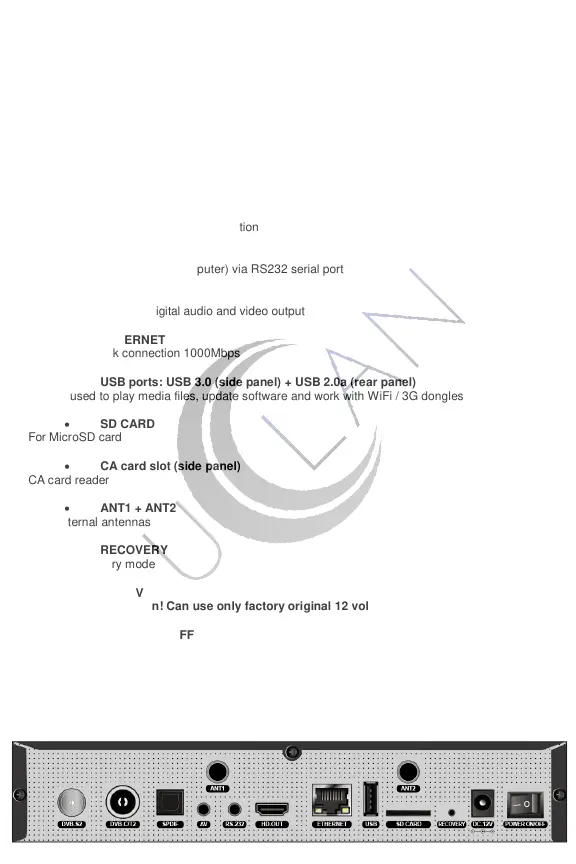 Power socket. Attention! Can use only factory original 12 volts power adapter!