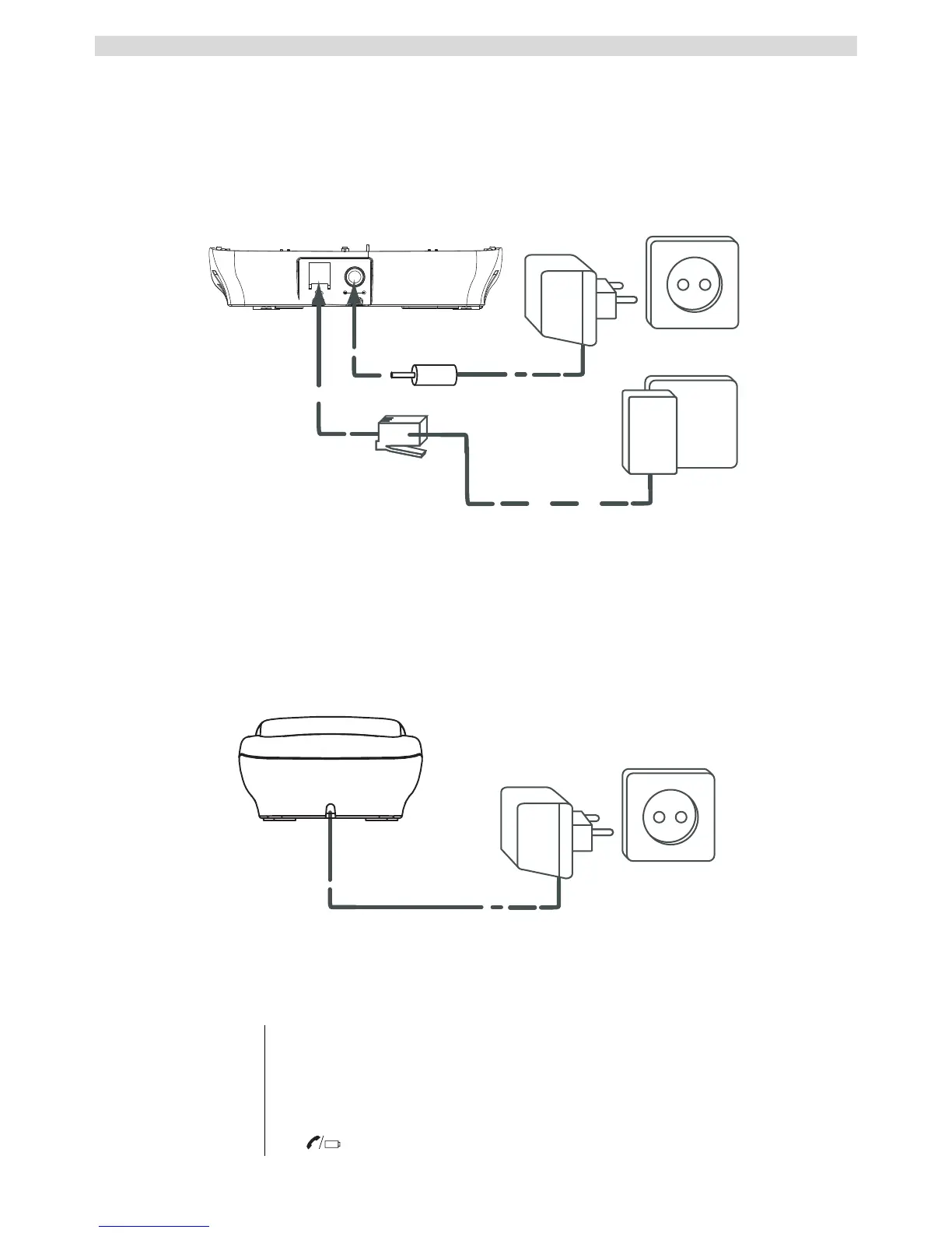 1 Connect the mains adapter to the base station and then plug it into a mains socket.