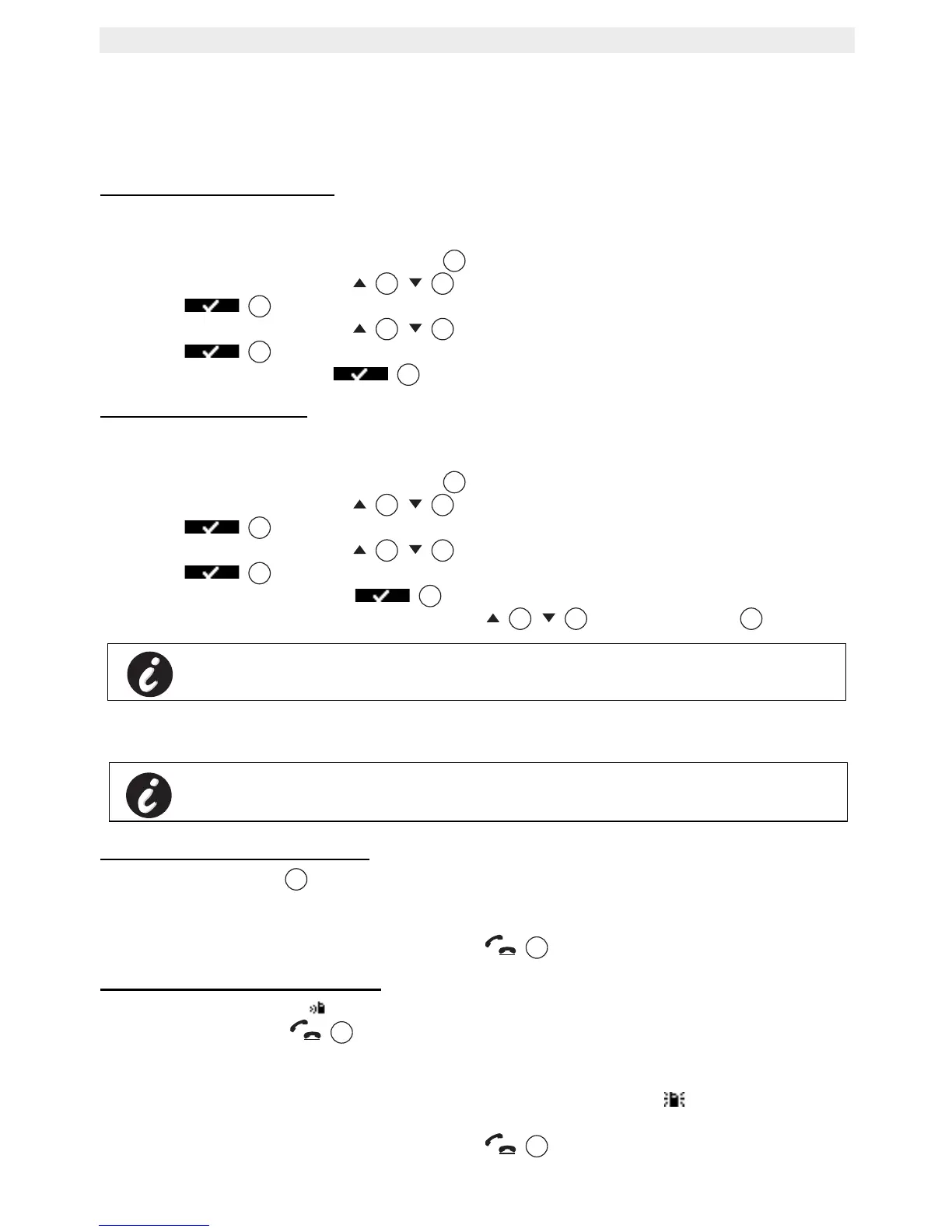 • Lift the handset off its base(if the Auto answer option is active,see §“6.20 Auto answer” )