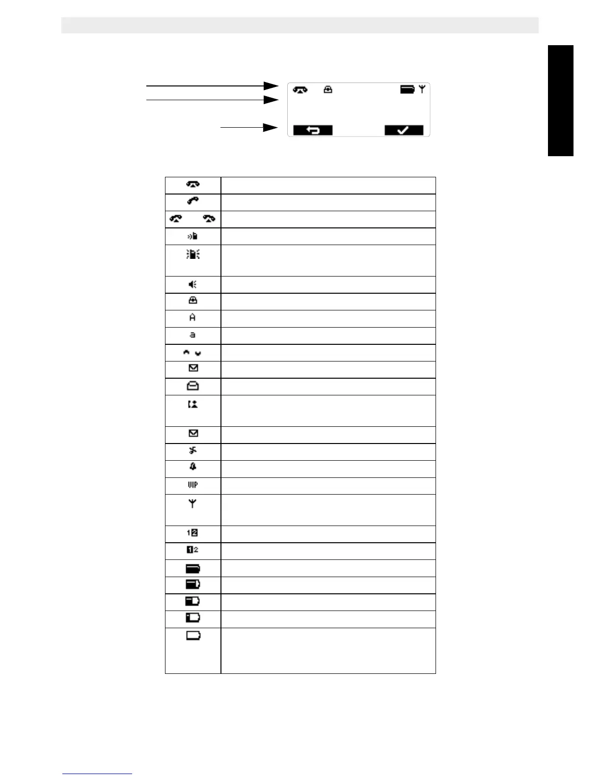 signals and the battery symbol on the