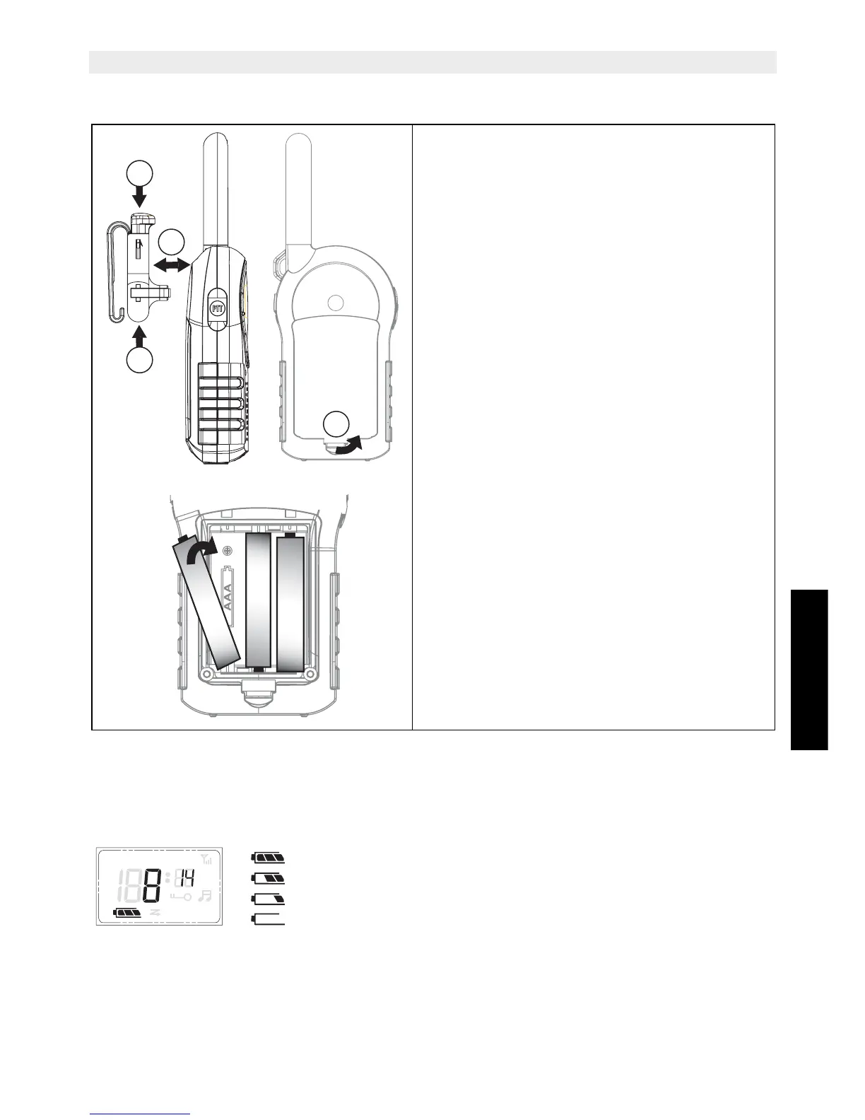 Gürtelklemme (A), während Sie die