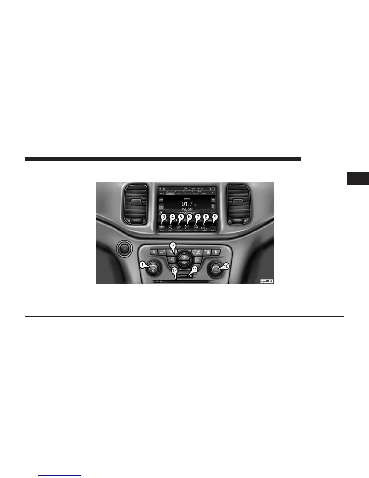 2 Manual Climate Control 6 Climate soft-key 10— Enter/Browse & Tune/Scroll knob