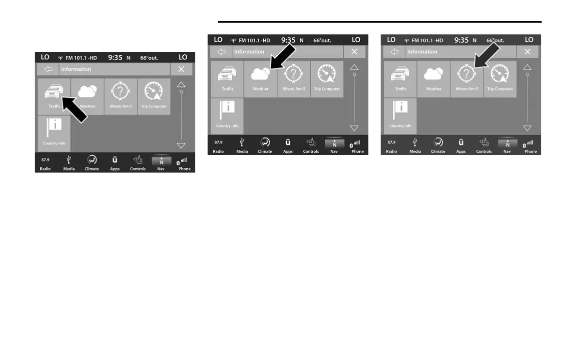 2. Press the Traffic button on the touchscreen.