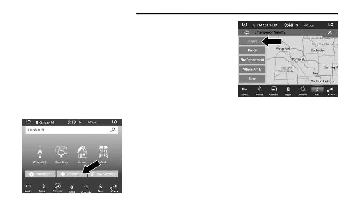 From the Nav Main Menu, press the Emergency