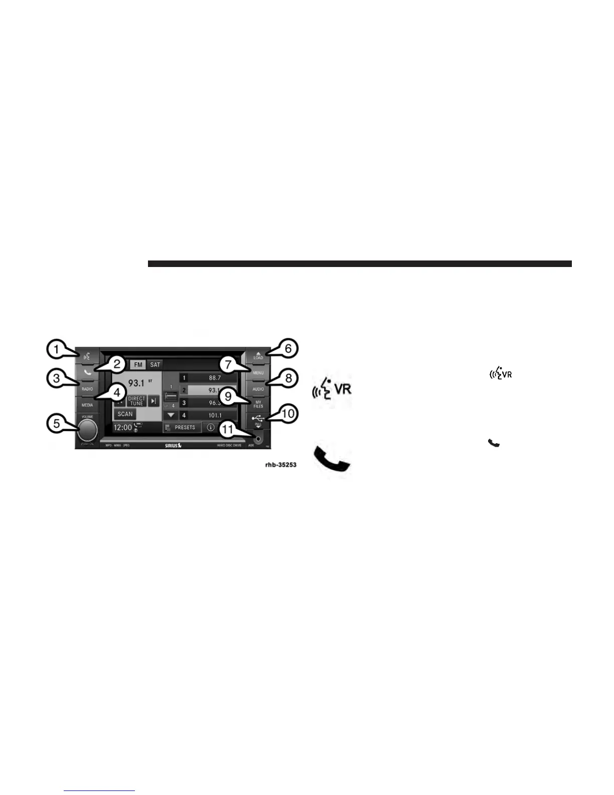 Hard-keys on the left and right side of the radio faceplate.